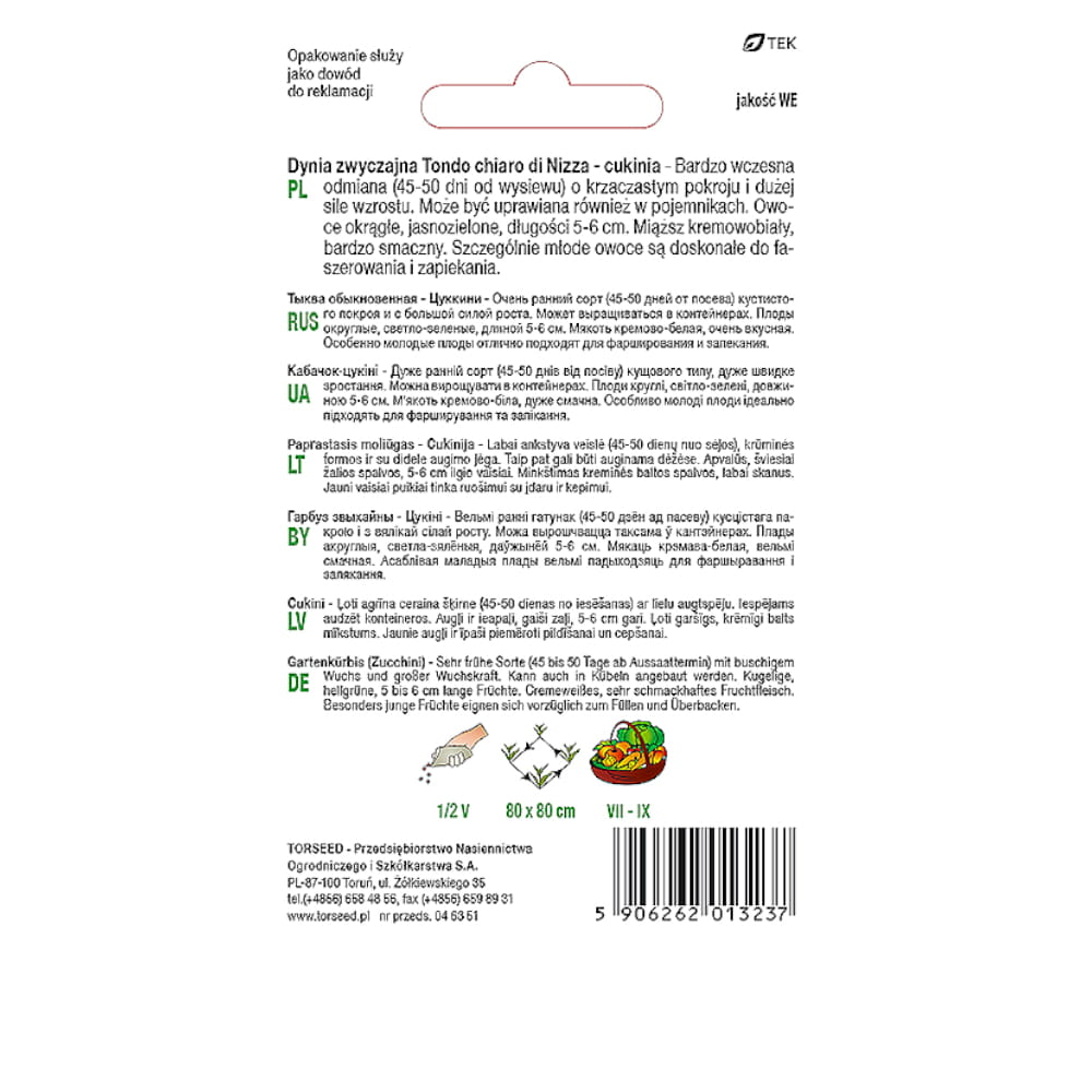 Bardzo wczesna odmiana (45-50 dni od wysiewu) o krzaczastym pokroju i dużej sile wzrostu. Może być uprawiana również w pojemnikach. Owoce okrągłe, jasnozielone, długości 5-6 cm. Miąższ kremowobiały, bardzo smaczny. Szczególnie młode owoce są doskonałe do faszerowania i zapiekania.