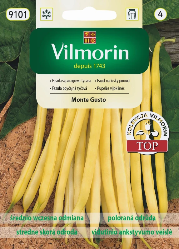 Odmiana tyczna. Bardzo wczesna: ok. 60 dni od siewu do zbioru. Tworzy żółte strąki, okrągłe w przekroju, o długości do 25cm, dobrze wyeksponowane i łatwe do zbioru. Odmiana odporna na wirusa mozaiki fasoli.
