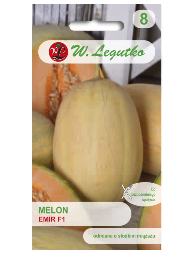 Odmiana mieszańcowa o jasnej skórce i pomarańczowym słodkim miąższu. Doskonały jako zdrowa przekąska, niezastąpiony w owocowych sałatkach, koktajlach, smoothie bowl'ach oraz deserach lodowych. Melon Emir zachwyca słodyczą miąższu i idealnie komponuje się również z wytrawnymi przekąskami. Niezastąpiony w sałatce z rukolą i szynką parmeńską oraz sosem balsamicznym.