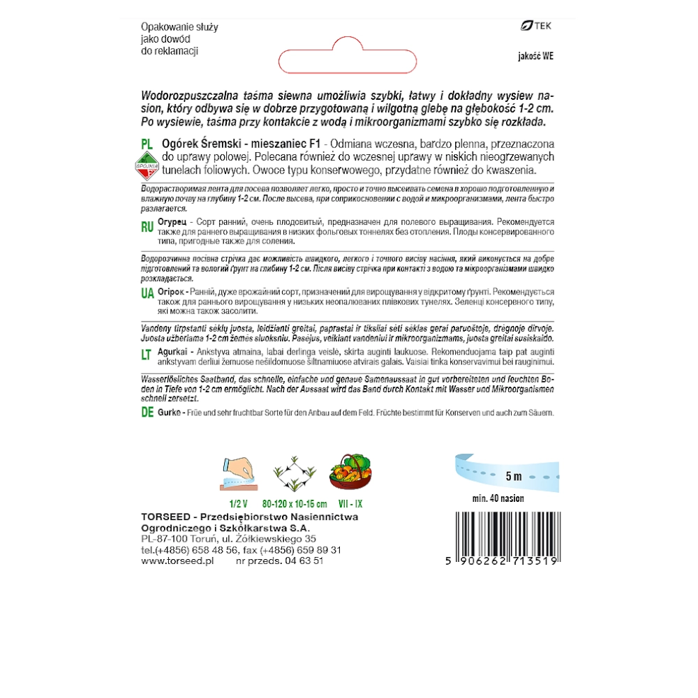 Ogórek konserwowy Śremski F1 to wczesna odmiana ogórka o wysokiej wartości użytkowej. Charakteryzuje się dużą plennością i odpornością na choroby. Jest polecana do uprawy zarówno na konserwowanie, jak i kiszenie. Można ją również uprawiać na wczesny zbiór pod niskie, chłodne tunele.