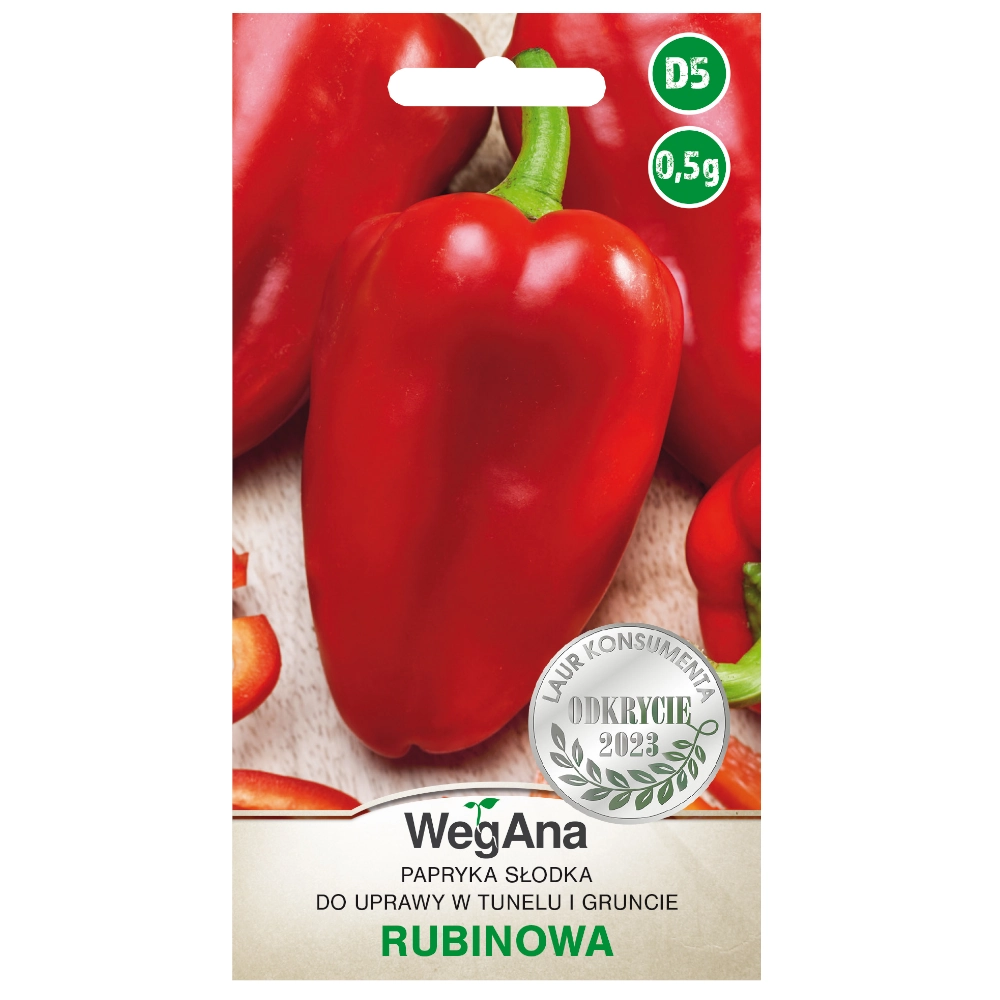 Papryka Rubinowa, to odmiana słodka, średnio wczesna polecana do zimnego pędzenia pod osłonami i uprawy w gruncie. Tworzy trójkątne owoce o grubych ściankach (ok. 8 mm), ciemnoczerwone z połyskiem w fazie dojrzałości botanicznej (zielone w fazie dojrzałości technicznej). Owoce osiągają wagę średnio ok. 150 g, a stosunek długości do szerokości to 12:6,7 cm.