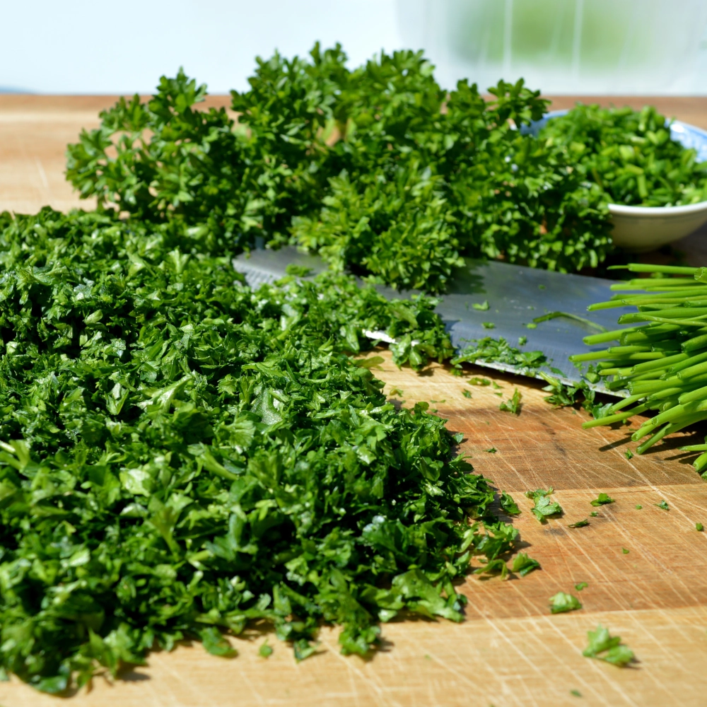 Odmiana o karbowanych liściach, bogata w witaminę C i sole mineralne. Idealna do dekoracji dań, kanapek i sałatek. Rośnie dobrze na glebach żyznych i zasobnych. Wymaga regularnego podlewania. Pietruszkę naciową z powodzeniem uprawiać można w gruncie, szklarni czy pojemnikach i doniczkach na balkonie czy tarasie. Liście należy zbierać w miarę zapotrzebowania.