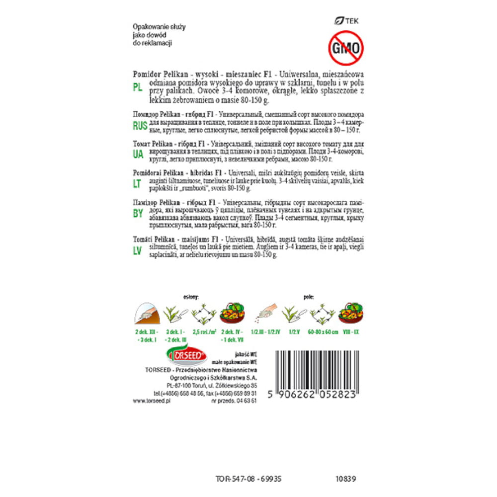 Pomidor wysoki Pelikan F1. Odmiana plenna, wczesna, o średniej sile wzrostu i zwartym pokroju, krótkich międzywęźlach. Owoce 3 - 4 komorowe o masie 80 - 120g, lekko spłaszczone, dobrze wybarwione, bez piętki, lekko żebrowane.