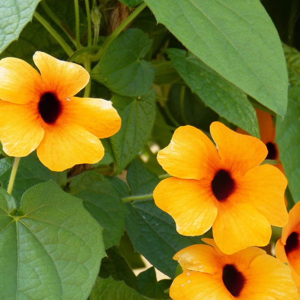 Roślina jednoroczna, pnąca o sercowatych liściach i wijących się pędach osiągających długość do 2-3 m. Pomarańczowe płaskie kwiaty z ciemno brązowym oczkiem pojawiają się obficie od czerwca do października. Doskonała roślina do obsadzania pergoli, krat, ogrodzeń i balkonów.
